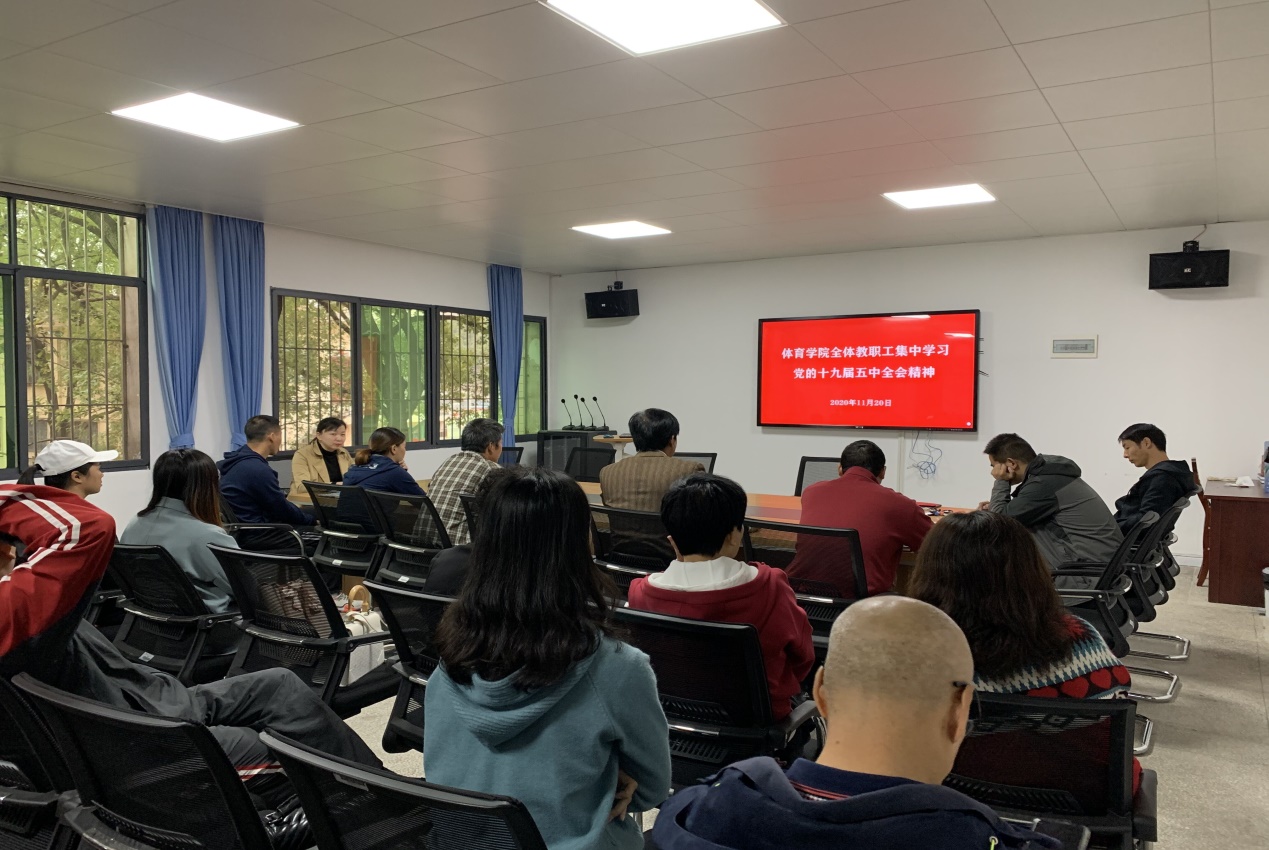 随后,全体教职工在学院二楼会议室集中学习教育系统十九届五中全会精神宣讲报告会。与会人员认真听取并学习了教育部党组书记、部长陈宝生的视频报告,学习时长127分钟。